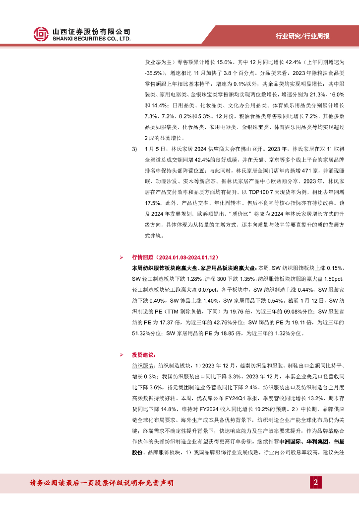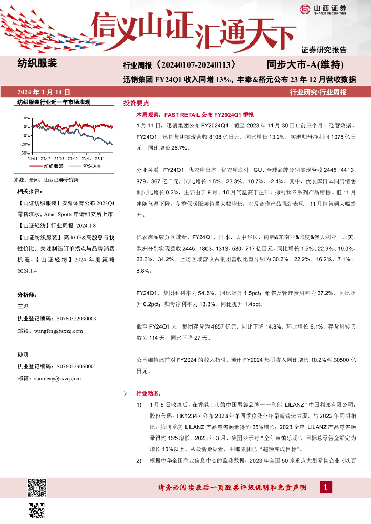 山西证券:纺织服装行业周报:迅销集团FY24Q1收入同增13%,丰泰&裕元公布23年12月营收数据.pdf