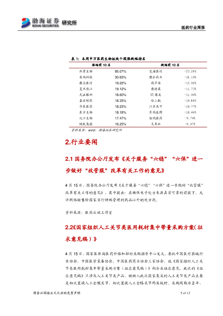 渤海证券:医药行业周报:药品与耗材国采推进,结合估值与业绩探寻机会.pdf
