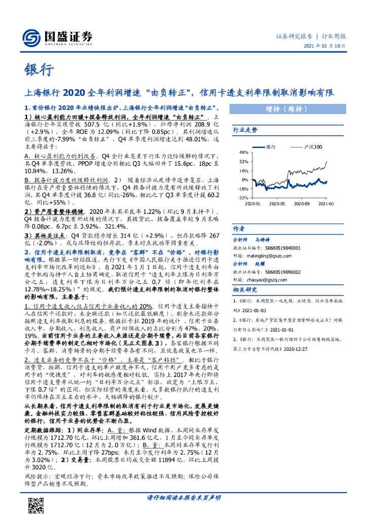 国盛证券:银行行业周报:上海银行2020全年利润增速“由负转正”,信用卡透支利率限制取消影响有限.pdf