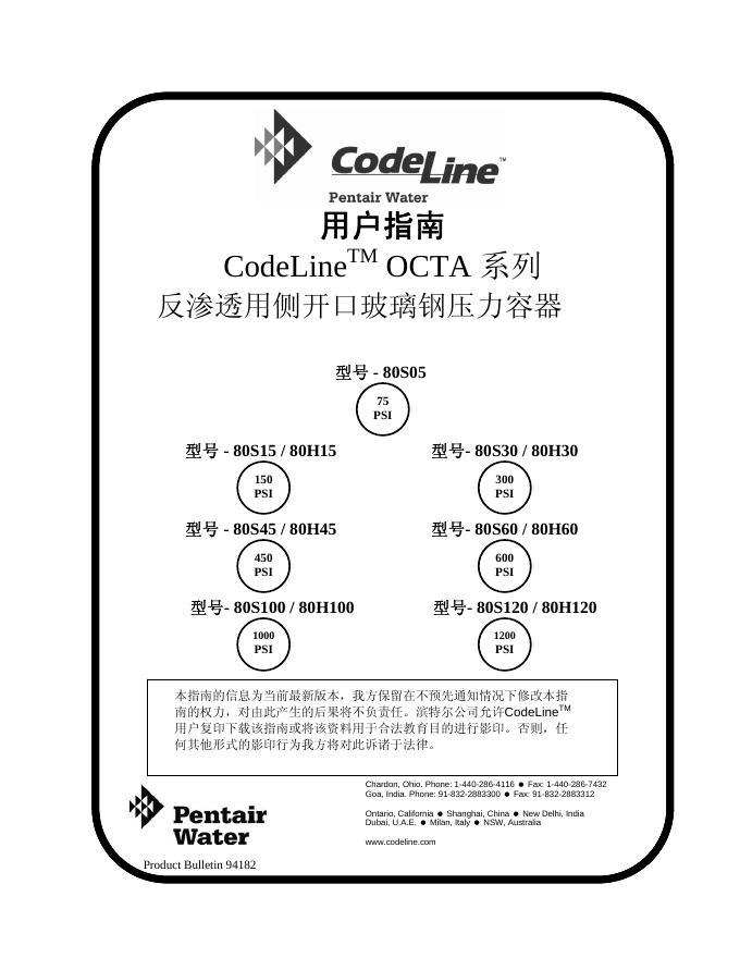 CodeLine TM OCTA 系列反渗透用侧开口玻璃钢压力容器 用户指南.pdf