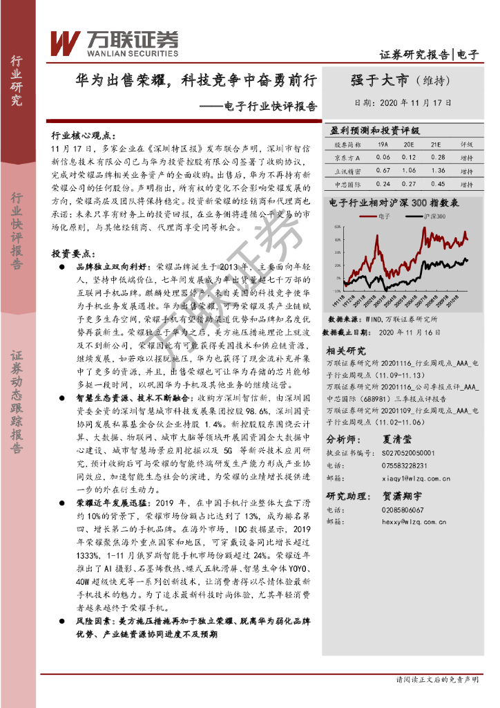万联证券:电子行业快评报告:华为出售荣耀,科技竞争中奋勇前行.pdf