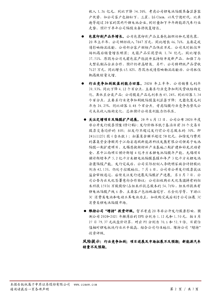 中原证券:恩捷股份(002812)-中报点评:业绩基本符合预期,下半年恢复增长.pdf
