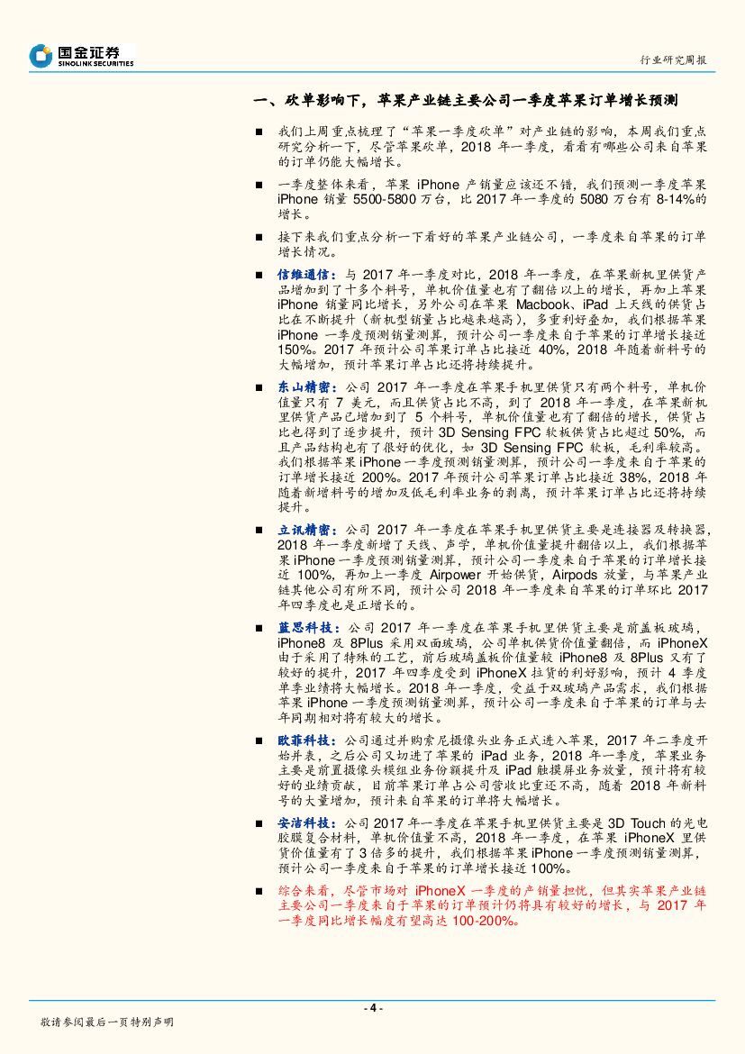 国金证券:电子行业研究周报:吹尽狂沙始到金,“砍单”影响下哪些公司一季度苹果订单仍能大幅增长?.pdf