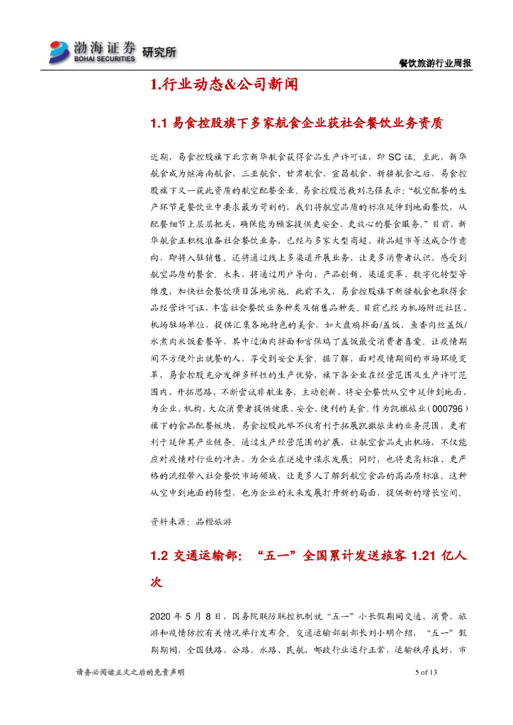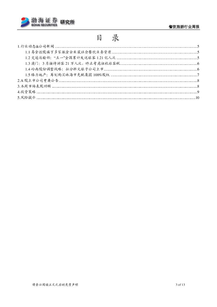 渤海证券:餐饮旅游行业周报:格力地产拟购买珠免 国旅收购海免51%股权.pdf