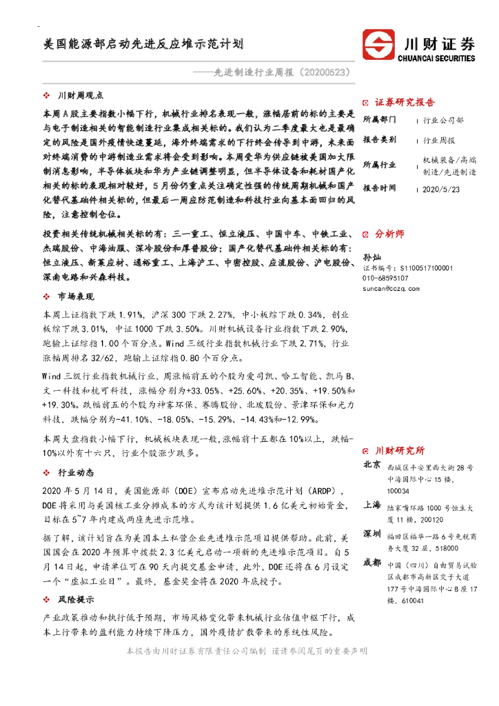 川财证券:先进制造行业周报:美国能源部启动先进反应堆示范计划.pdf
