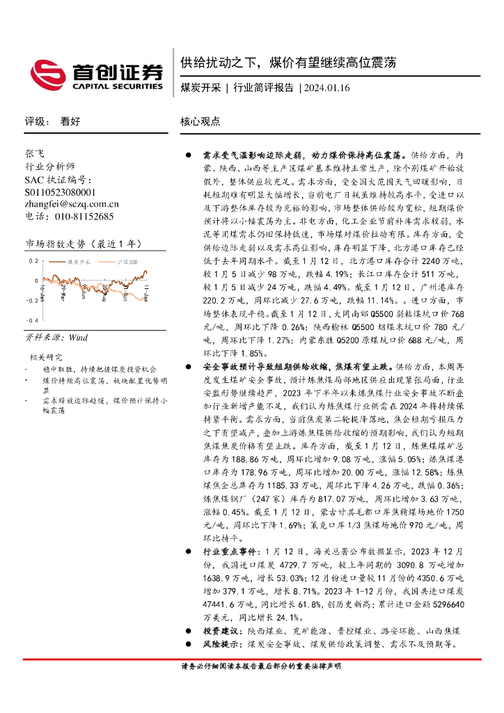 首创证券:煤炭开采行业简评报告:供给扰动之下,煤价有望继续高位震荡.pdf