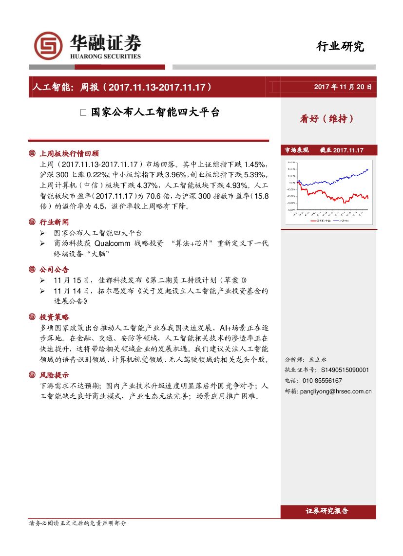 华融证券:人工智能行业周报:国家公布人工智能四大平台.pdf