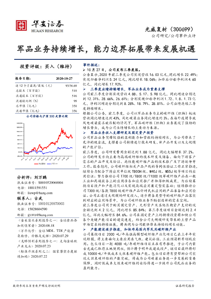 华安证券:光威复材(300699)-军品业务持续增长,能力边界拓展带来发展机遇.pdf