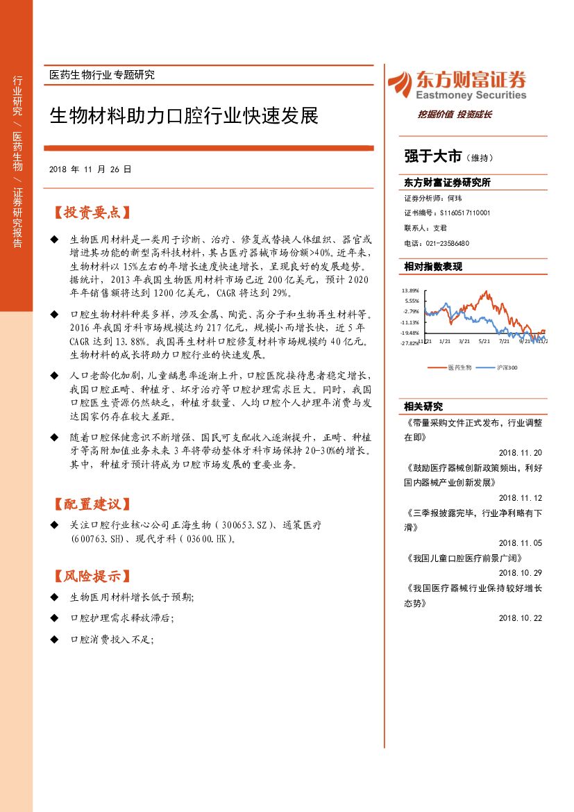 东方财富证券:医药生物行业专题研究:生物材料助力口腔行业快速发展.pdf