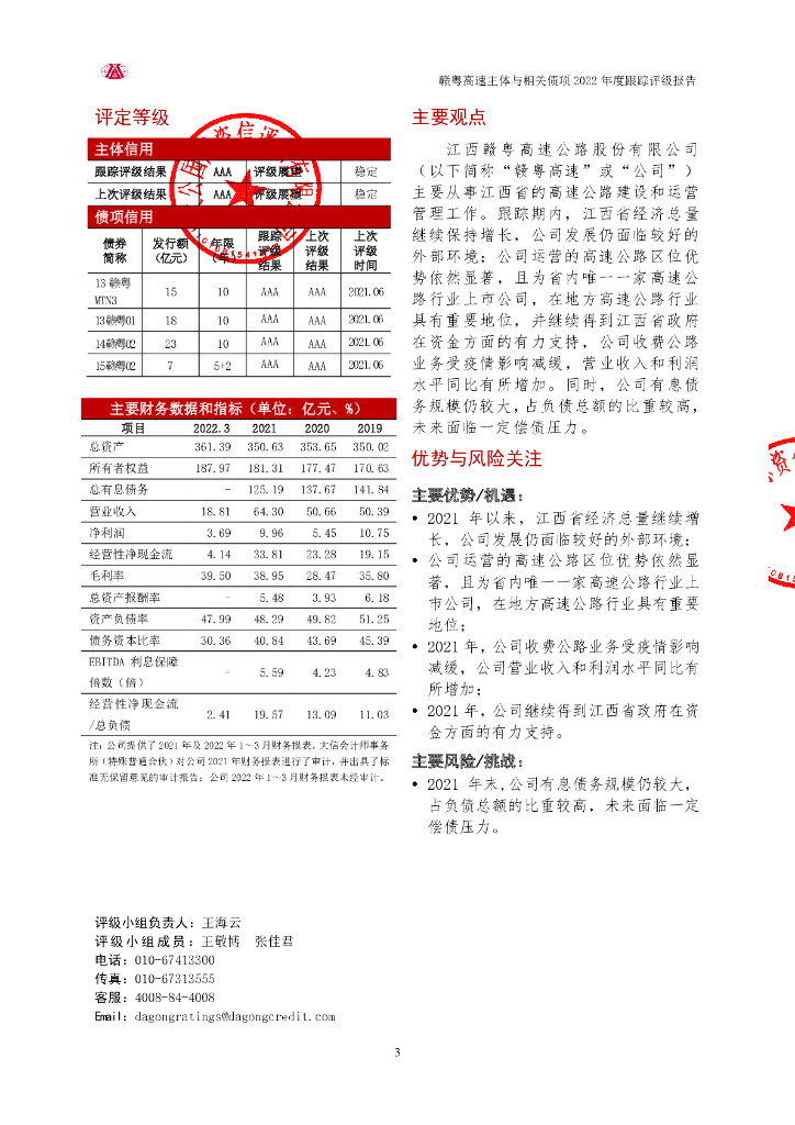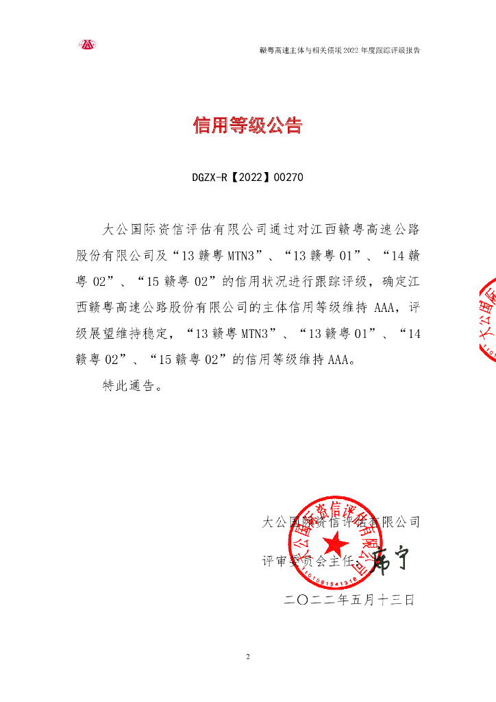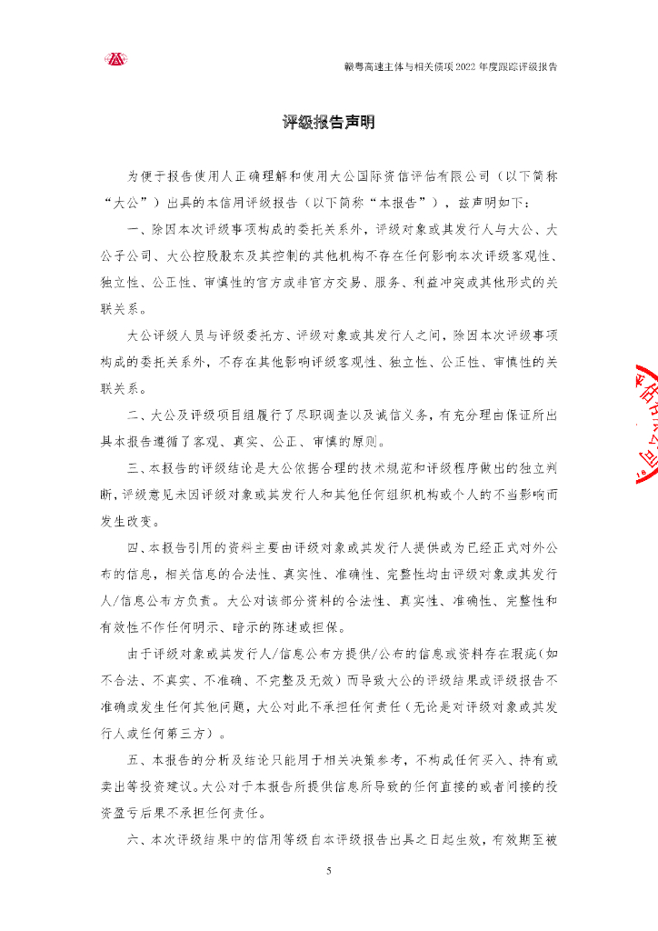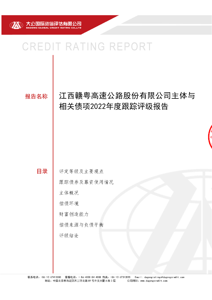 大公:江西赣粤高速公路股份有限公司主体与相关债项2022年度跟踪评级报告.pdf