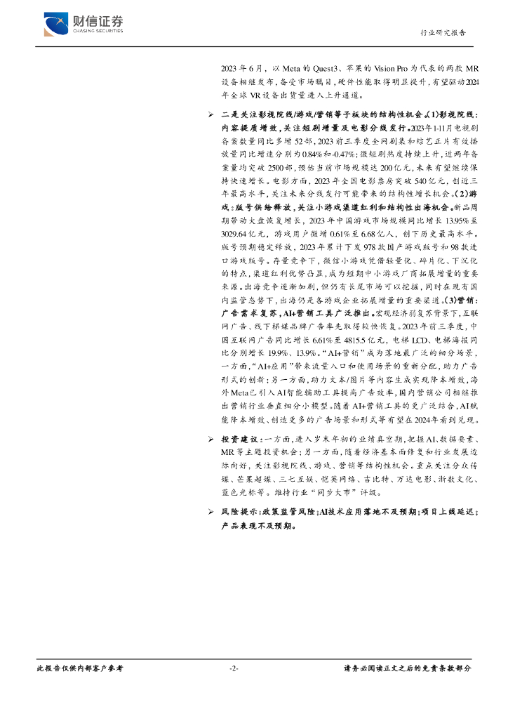 财信证券:传媒:内容提质与技术创新,期待2024年AI应用落地.pdf