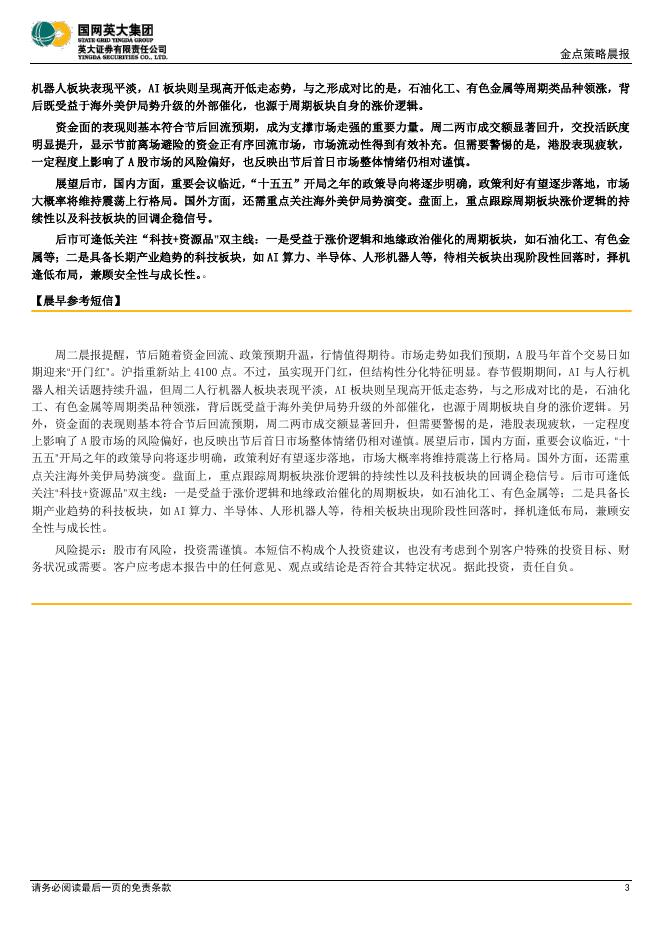 英大证券:金点策略晨报:A股马年开门红,逢低关注“科技+资源品”双主线-260225.pdf