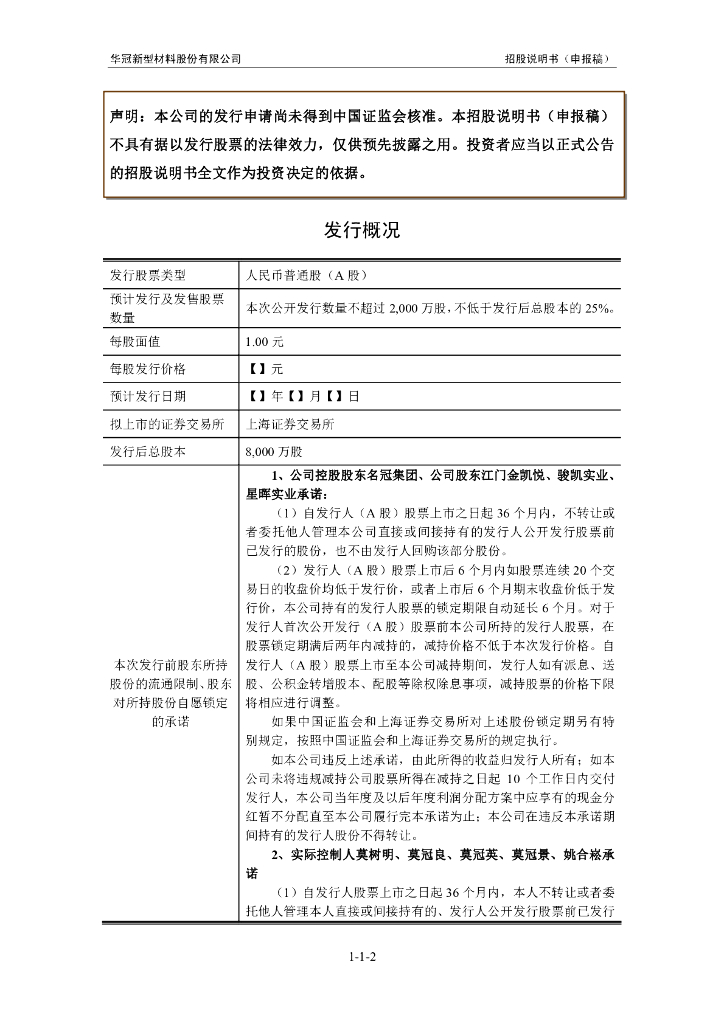 华冠新型材料股份有限公司上交所主板IPO上市招股说明书.pdf