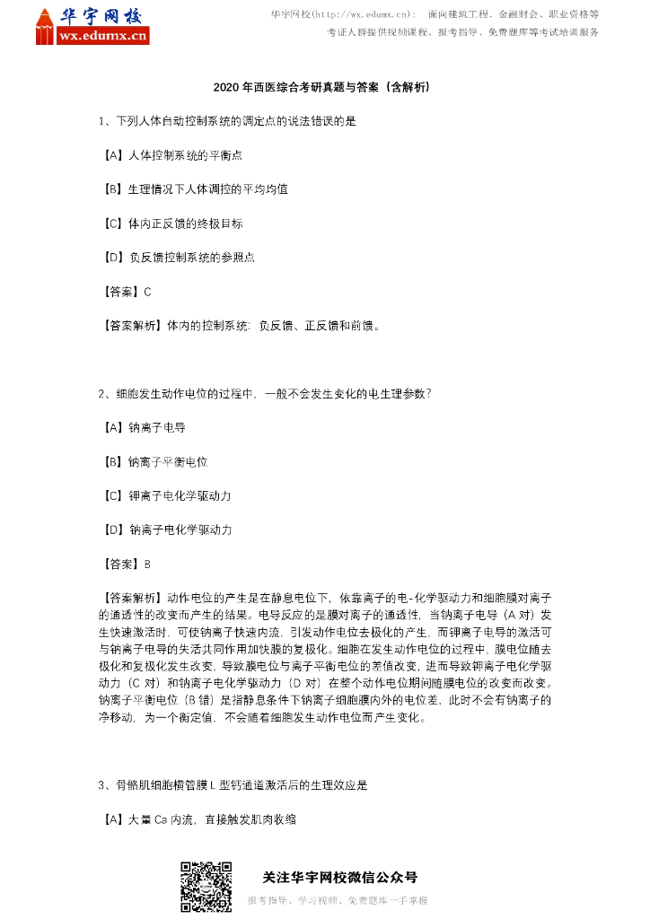 2020年西医综合考研真题与答案(含解析).pdf