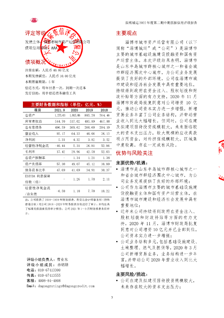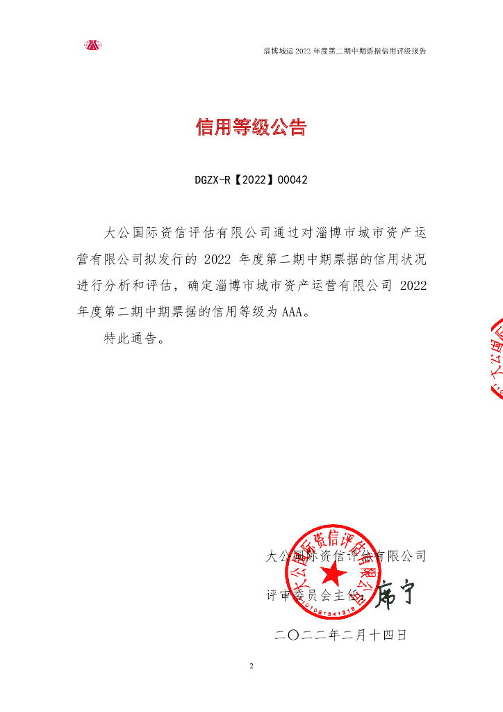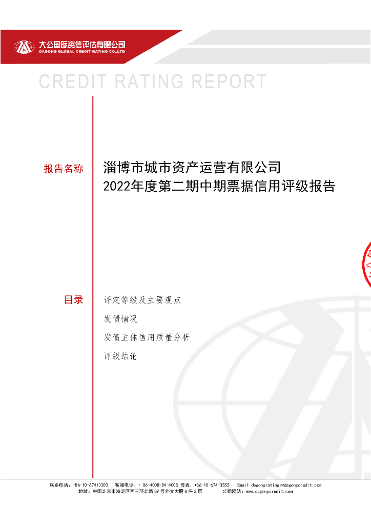 大公:淄博市城市资产运营有限公司2022年度第二期中期票据信用评级报告.pdf