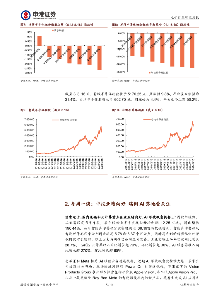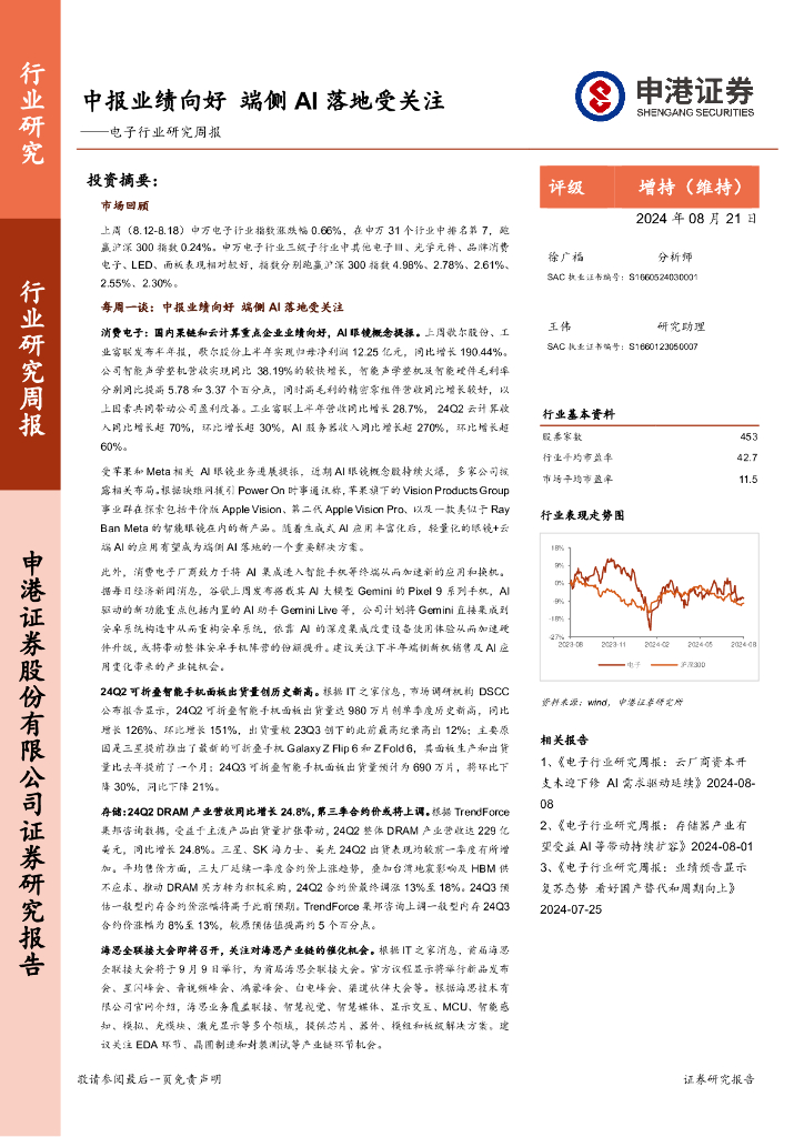 申港证券:电子行业研究周报:中报业绩向好,端侧AI落地受关注.pdf
