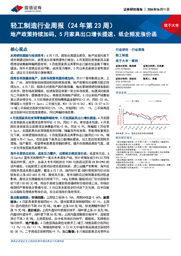 国信证券:轻工制造行业周报(24年第23周):地产政策持续加码,5月家具出口增长提速、纸企频发涨价函.pdf