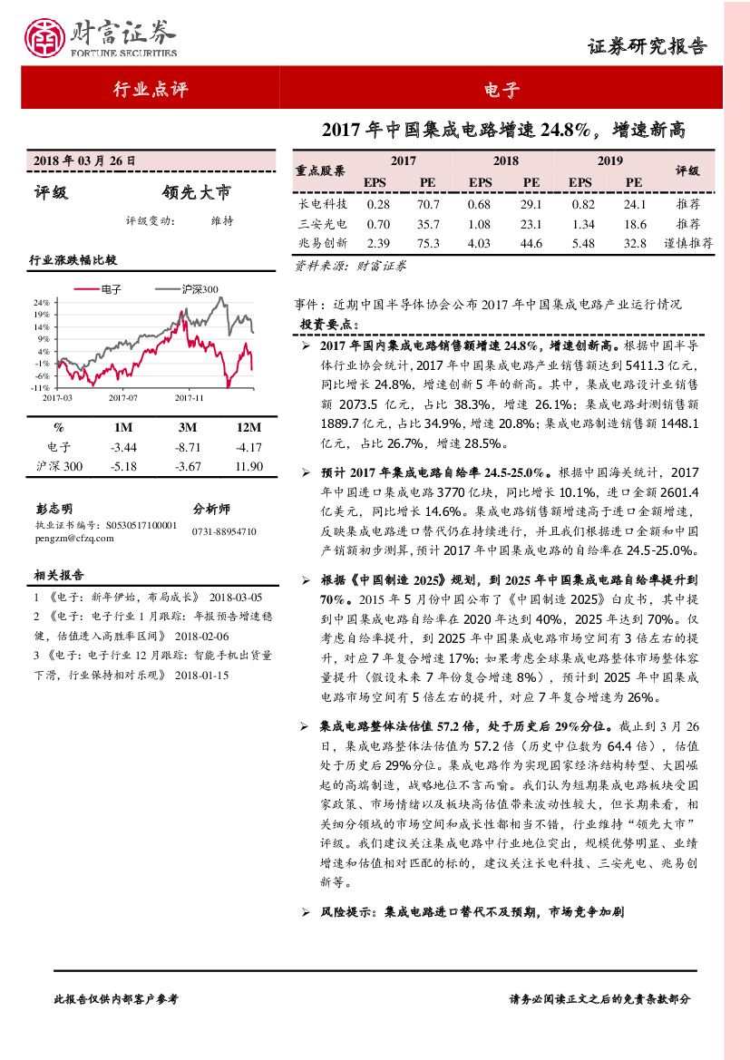 财富证券:电子行业:2017年中国集成电路增速24.8%,增速新高.pdf