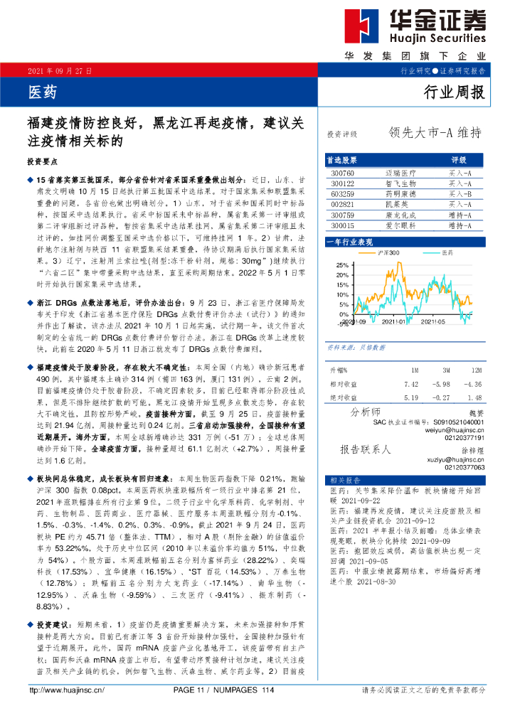 华金证券:医药行业周报:福建疫情防控良好,黑龙江再起疫情,建议关注疫情相关标的.pdf