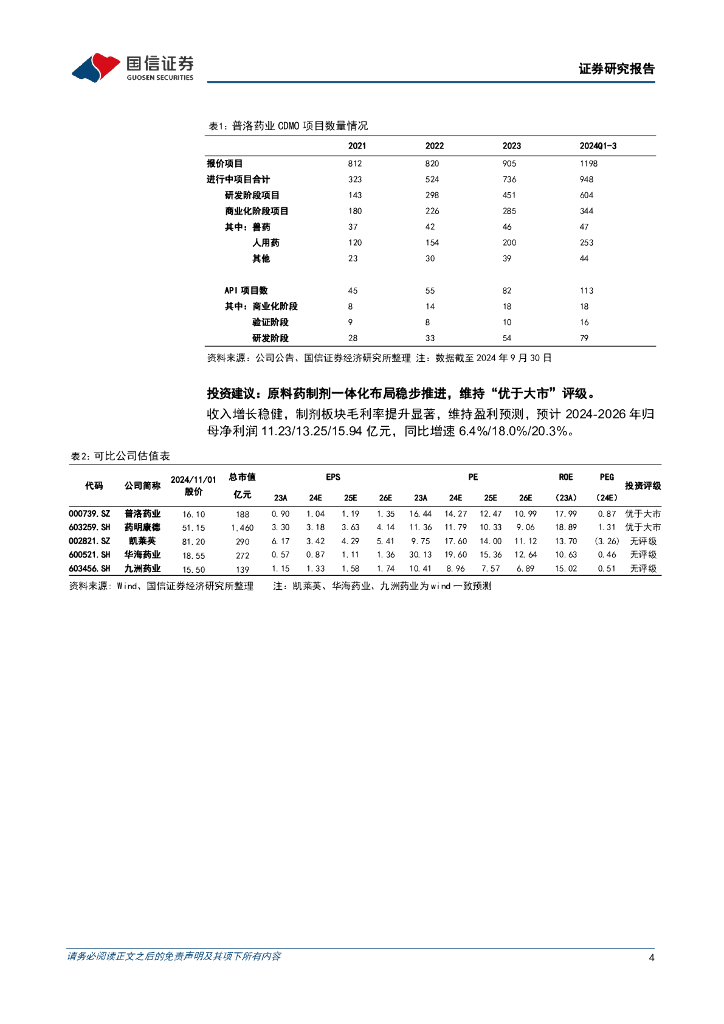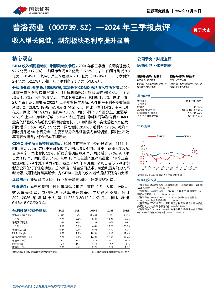 国信证券:普洛药业(000739)-2024年三季报点评:收入增长稳健,制剂板块毛利率提升显著.pdf