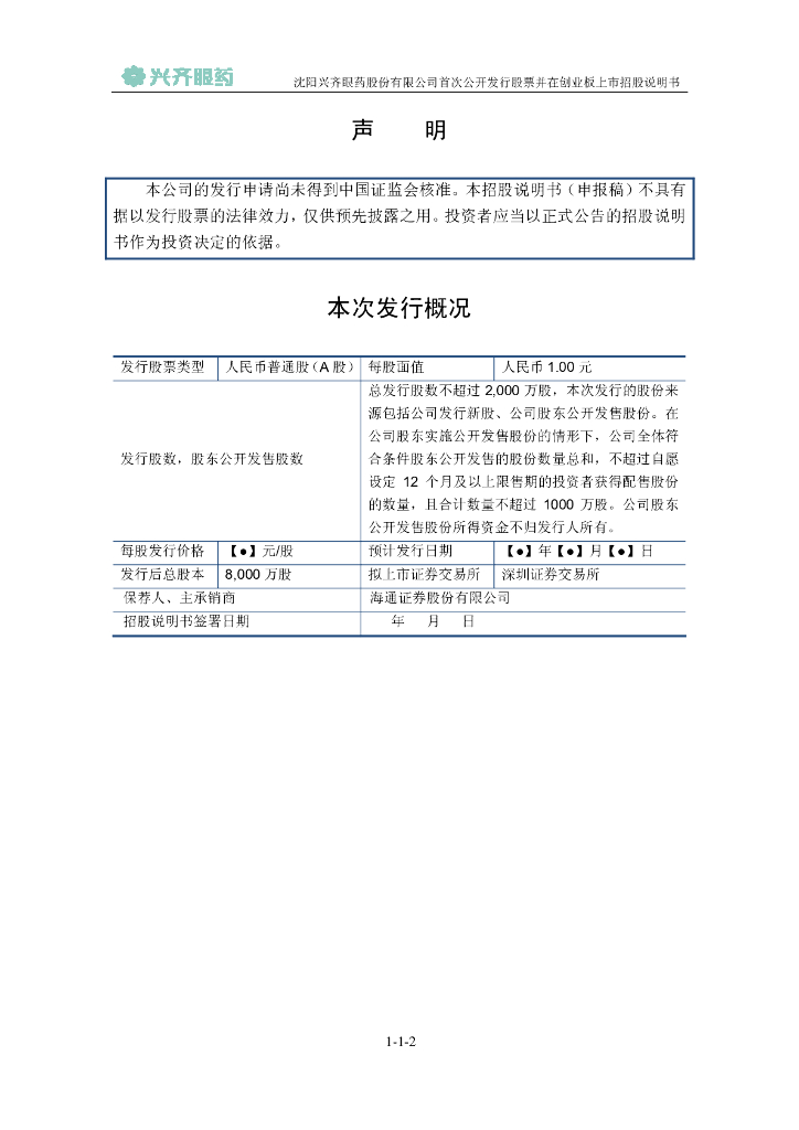 沈阳兴齐眼药股份有限公司深交所创业板IPO上市招股说明书.pdf