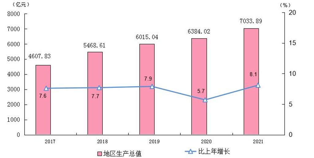 图1 2017-2021年地区生产总值(GDP)及其增长速度