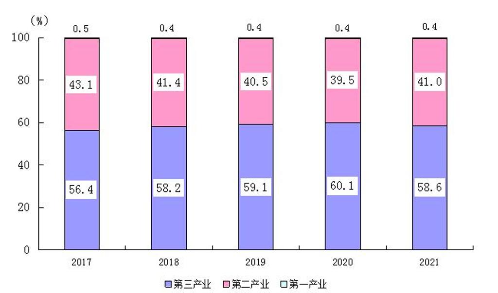 图2 2017-2021年三次产业增加值占地区生产总值比重