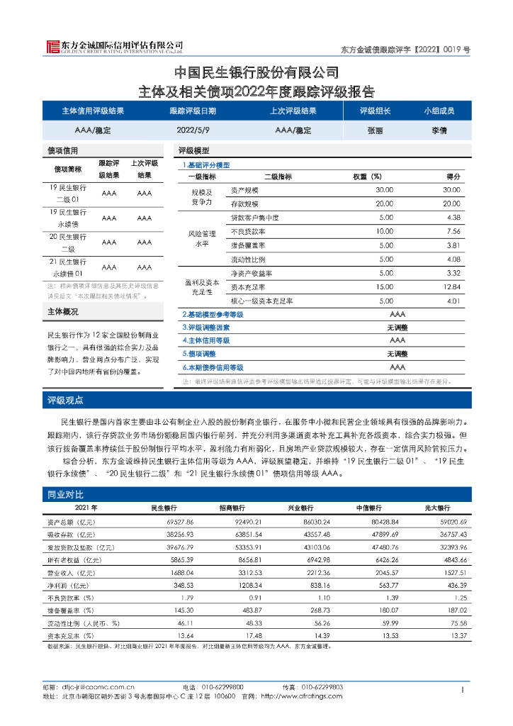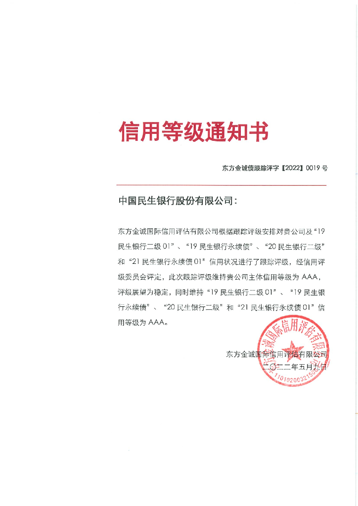 东方金诚:中国民生银行股份有限公司主体及相关债项2022年度跟踪评级报告.pdf