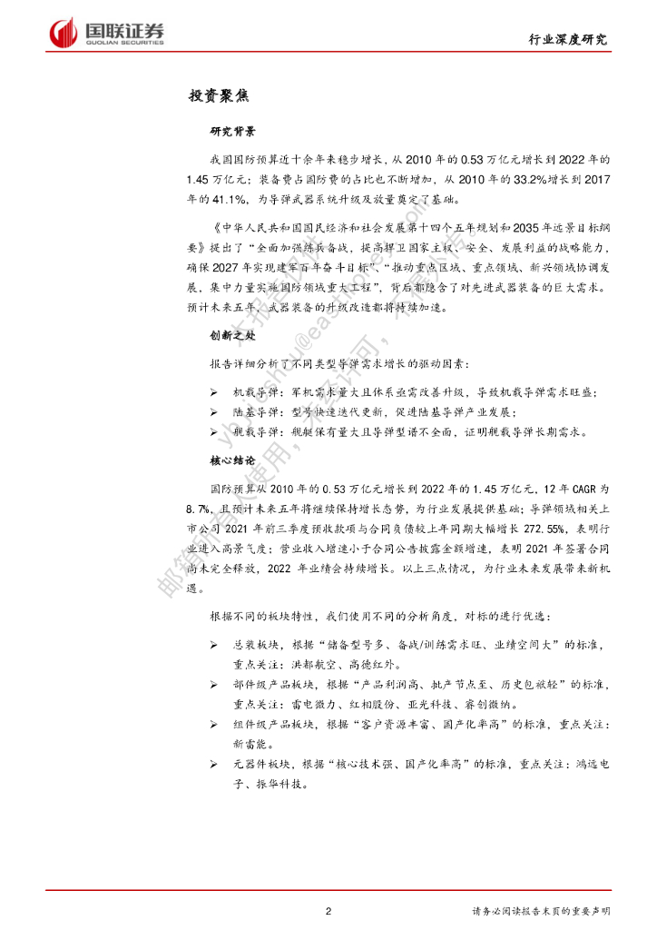 国联证券:国防军工行业:国防预算增长带来导弹领域发展新机遇.pdf