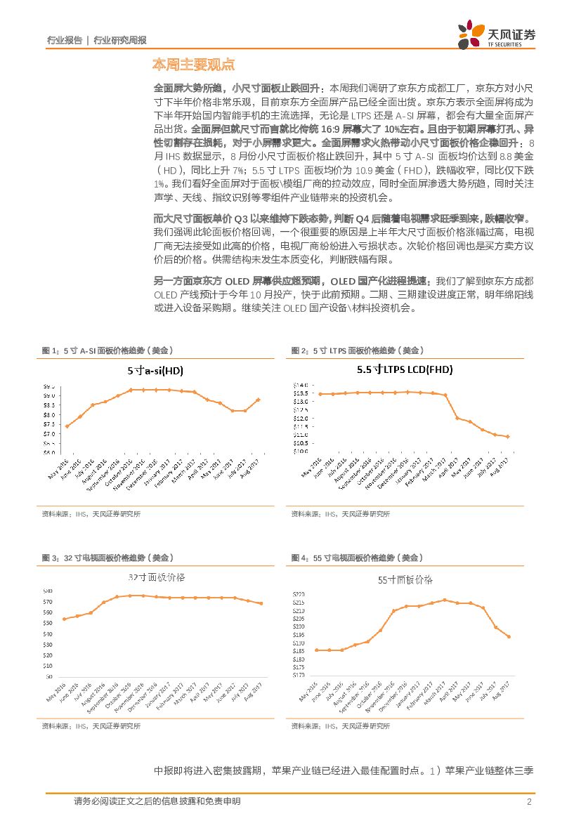 天风证券:电子行业研究周报:全面屏带动小尺寸面板价格企稳;重申电子白马投资机会.pdf