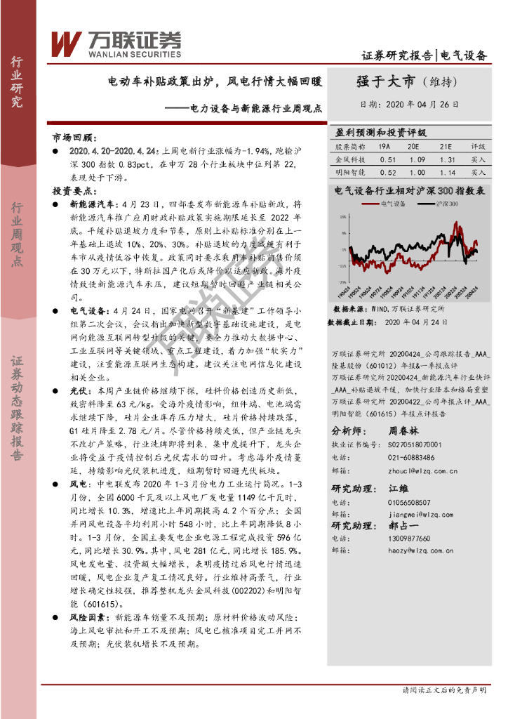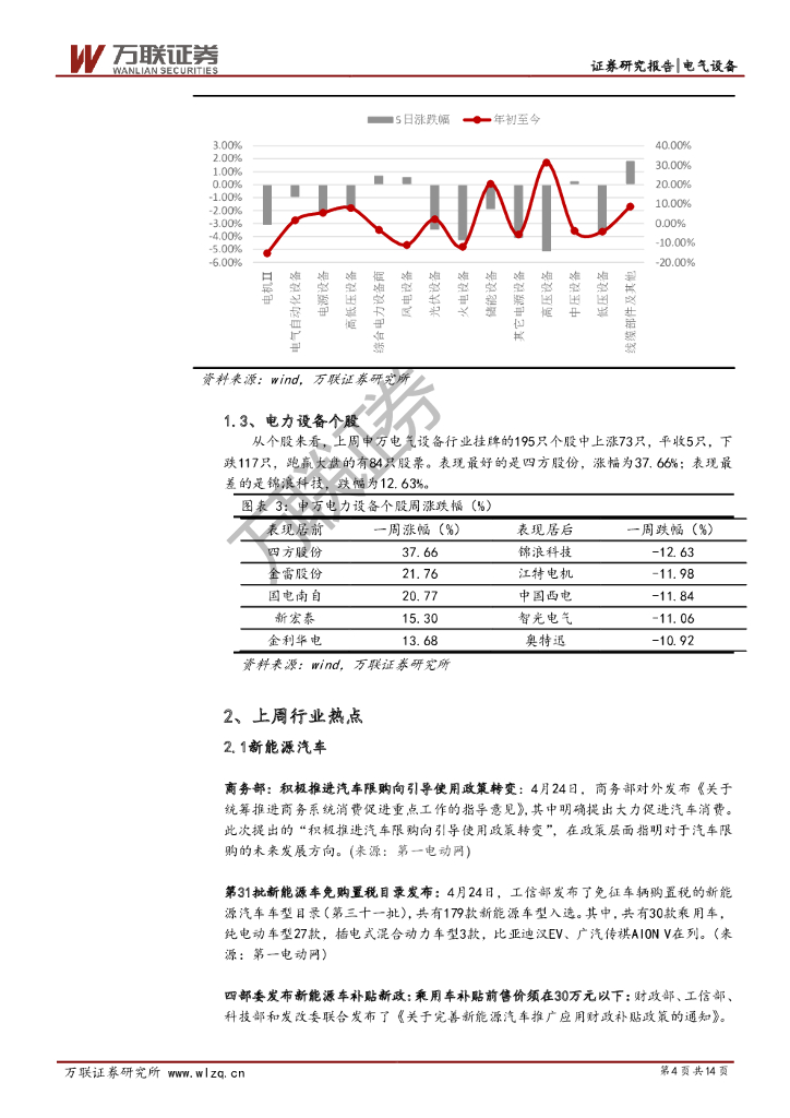 万联证券:电力设备与新能源行业周观点:电动车补贴政策出炉,风电行情大幅回暖.pdf