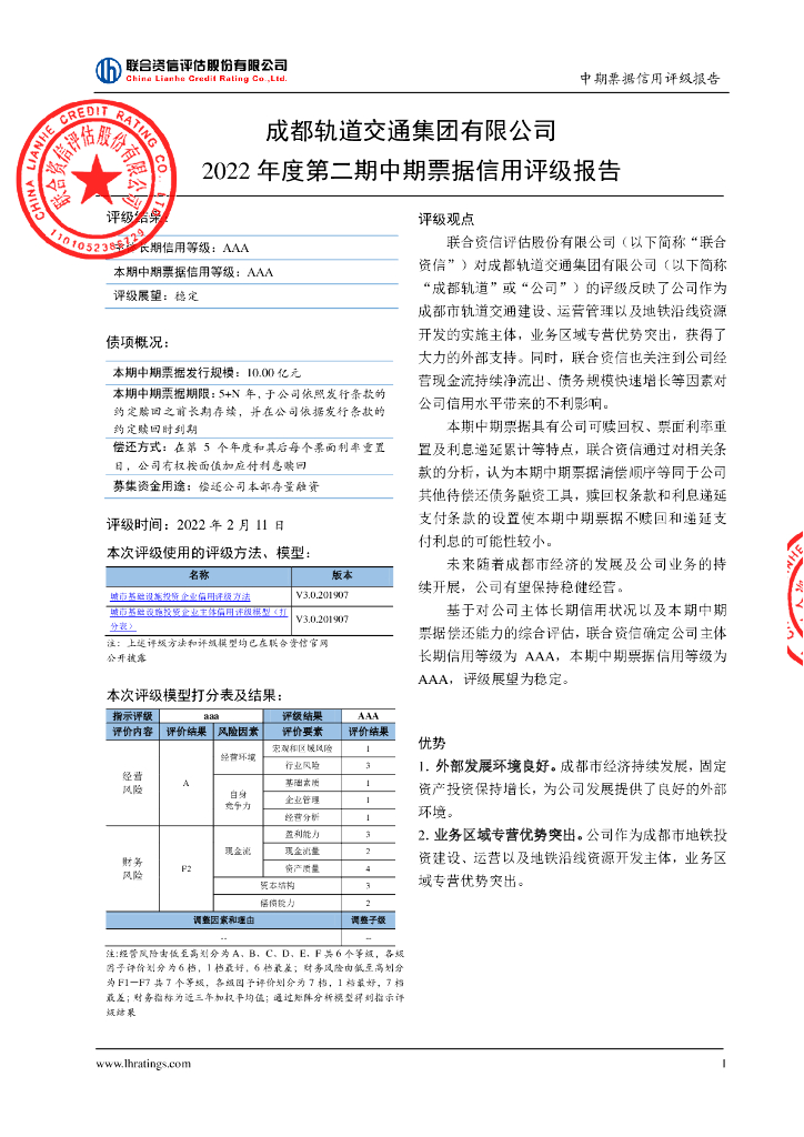 联合资信:成都轨道交通集团有限公司2022年度第二期中期票据信用评级报告.pdf