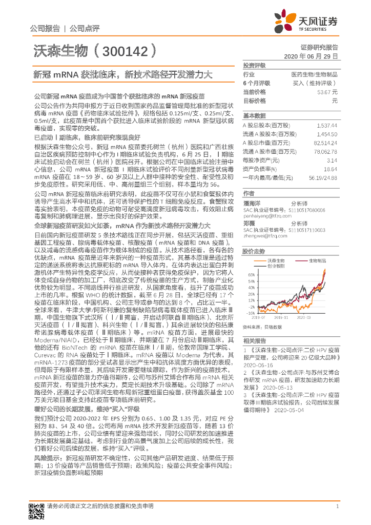 天风证券:沃森生物(300142)-新冠mRNA获批临床,新技术路径开发潜力大.pdf