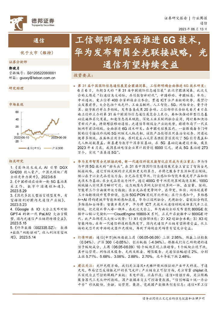 德邦证券:通信行业:工信部明确全面推进6G技术,华为发布智简全光联接战略,光通信有望持续受益.pdf