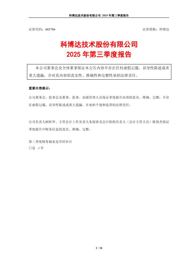 603786-科博达:科博达技术股份有限公司2025年第三季度报告.pdf