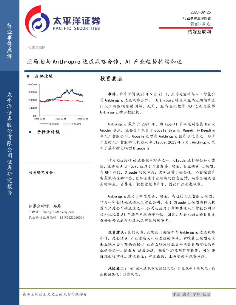 太平洋证券:传媒互联网:亚马逊与Anthropic达成战略合作,AI产业趋势持续加速.pdf