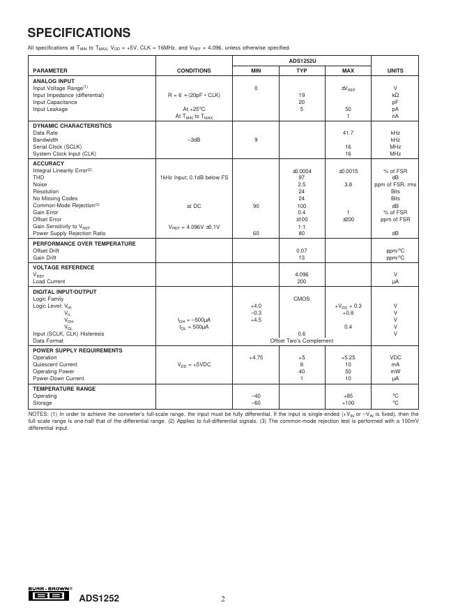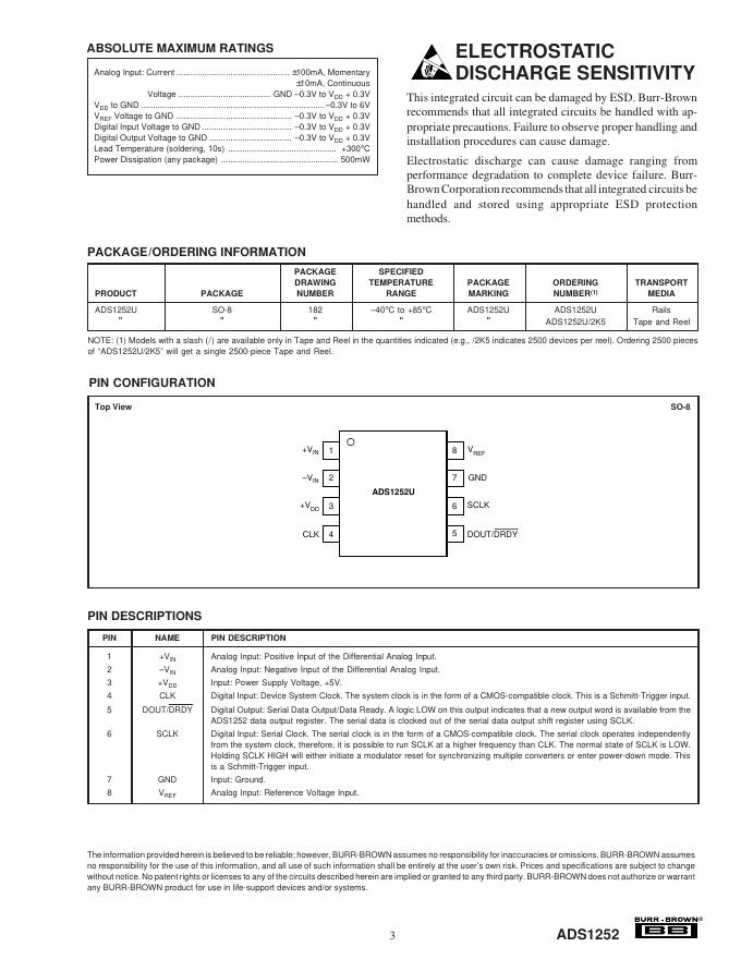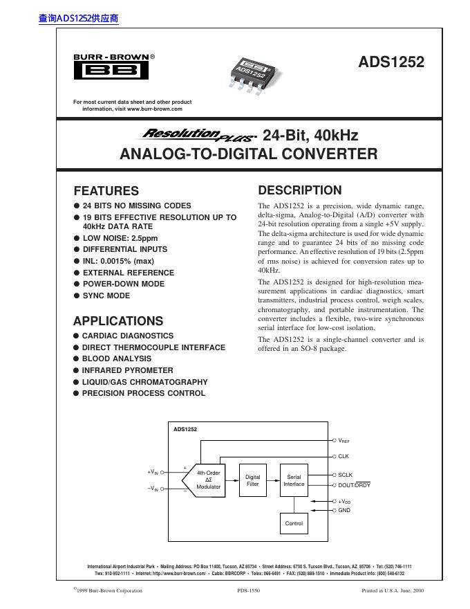 TEXAS INSTRUMENTS ADS1252 24-Bit, 40kHz ANALOG-TO-DIGITAL CONVERTER 数据手册.pdf
