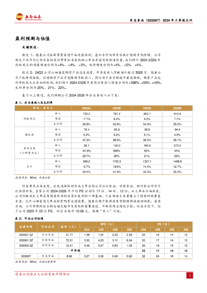 西南证券:有友食品(603697)-2024年三季报点评:新兴渠道迅速放量,Q3业绩大超预期.pdf