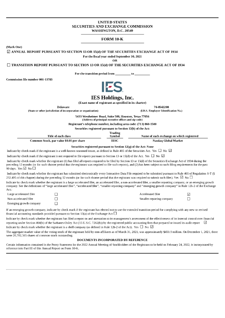IES Holdings, Inc.(IESC)2021财年年度报告(英文版).pdf
