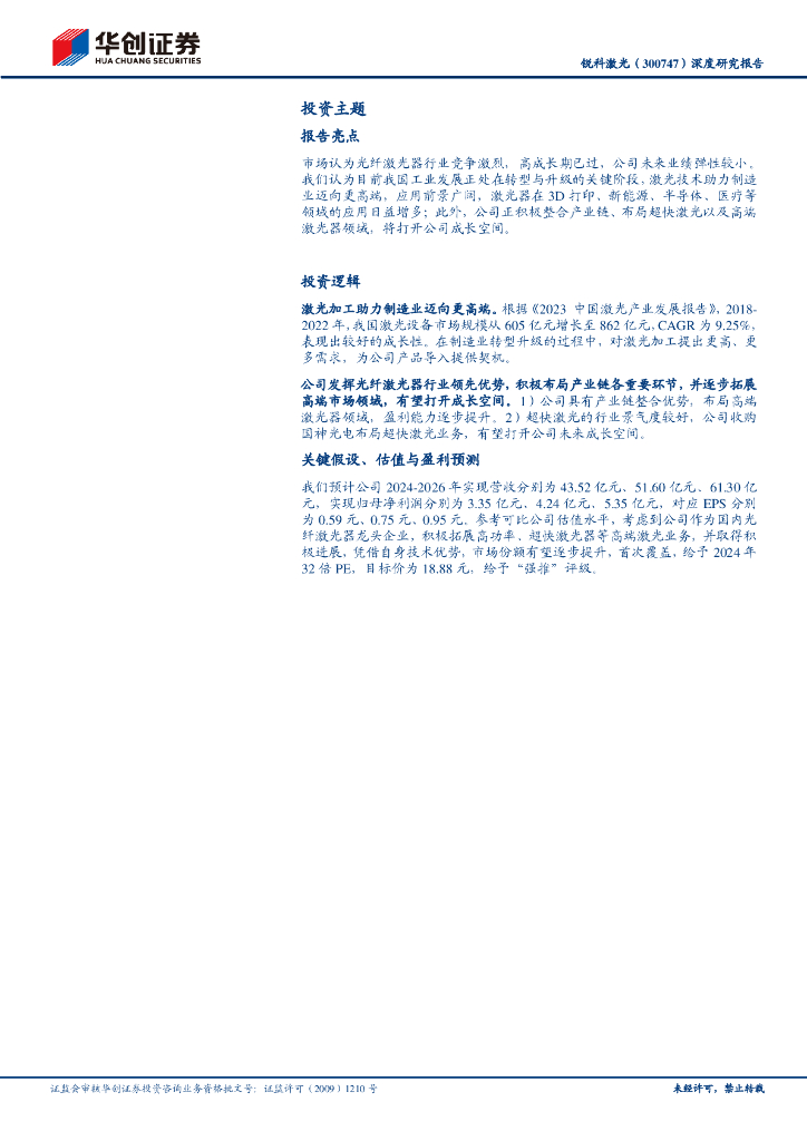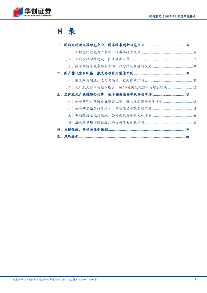 华创证券:锐科激光(300747)深度研究报告:国内光纤激光器龙头企业,盈利修复与高端迈进打开成长空间.pdf