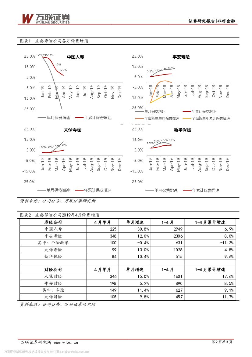 万联证券:上市险企2019年4月保费数据跟踪:保费增速回归稳健,新单销售略有压力.pdf