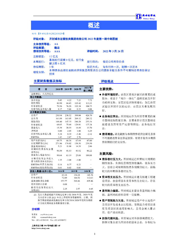 新世纪:开封城市运营投资集团有限公司2022年度第一期中期票据信用评级报告.pdf