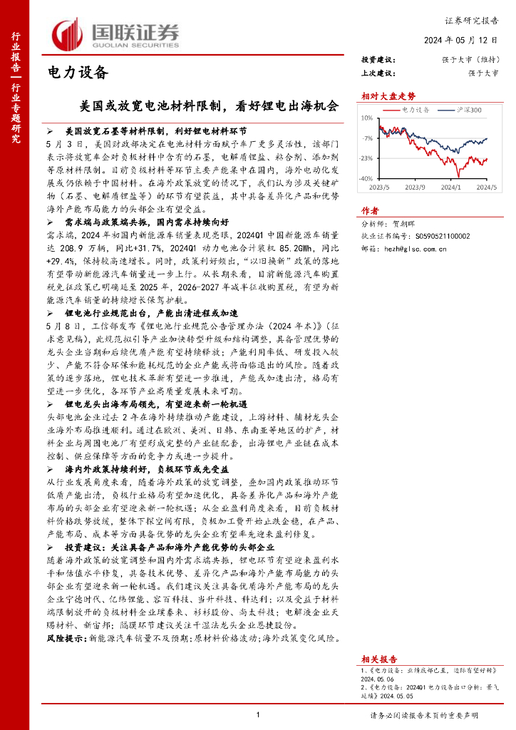 国联证券:电力设备:美国或放宽电池材料限制,看好锂电出海机会.pdf