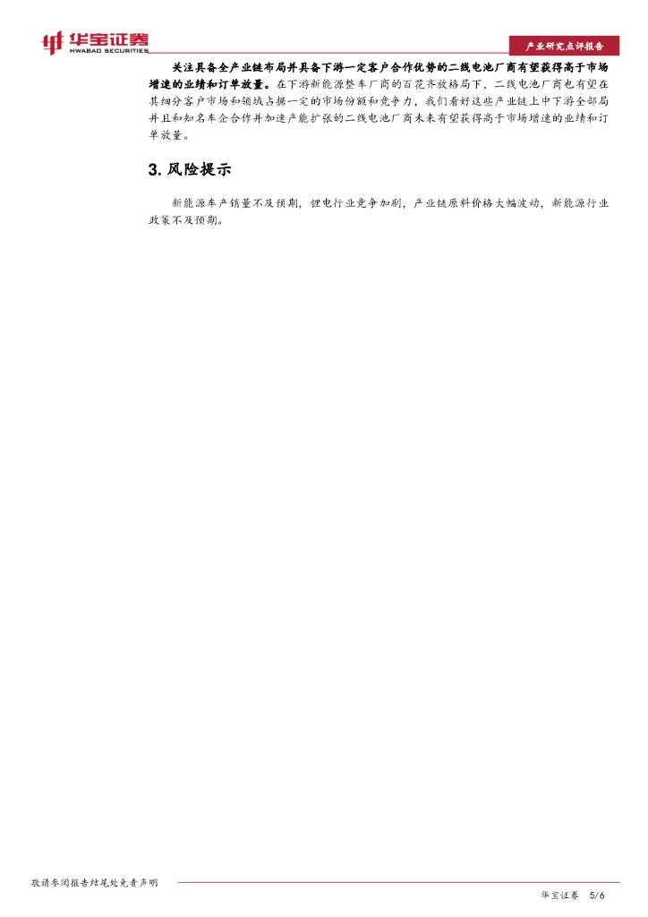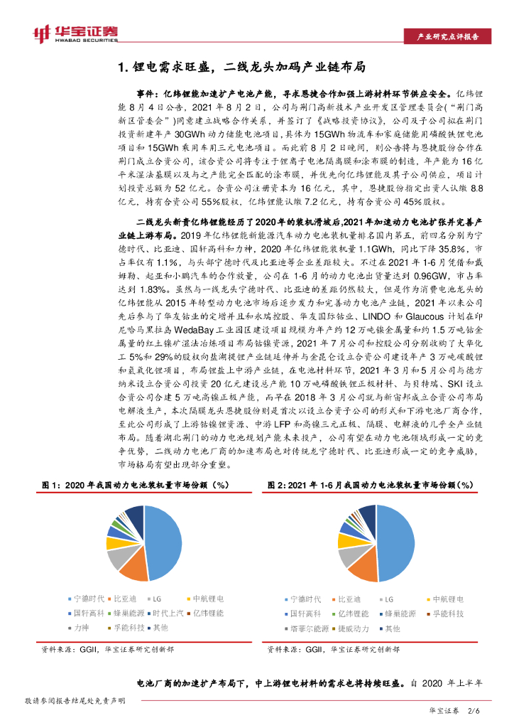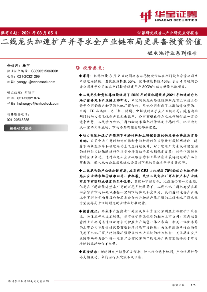 华宝证券:锂电池行业系列报告:二线龙头加速扩产并寻求全产业链布局更具备投资价值.pdf