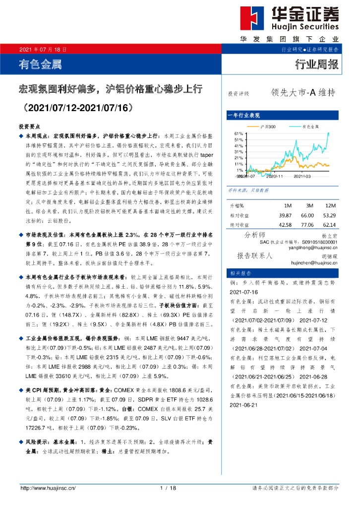 华金证券:有色金属行业周报:宏观氛围利好偏多,沪铝价格重心稳步上行.pdf
