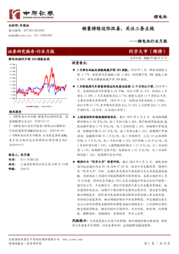 中原证券:锂电池行业月报:销量持续边际改善,关注三条主线.pdf