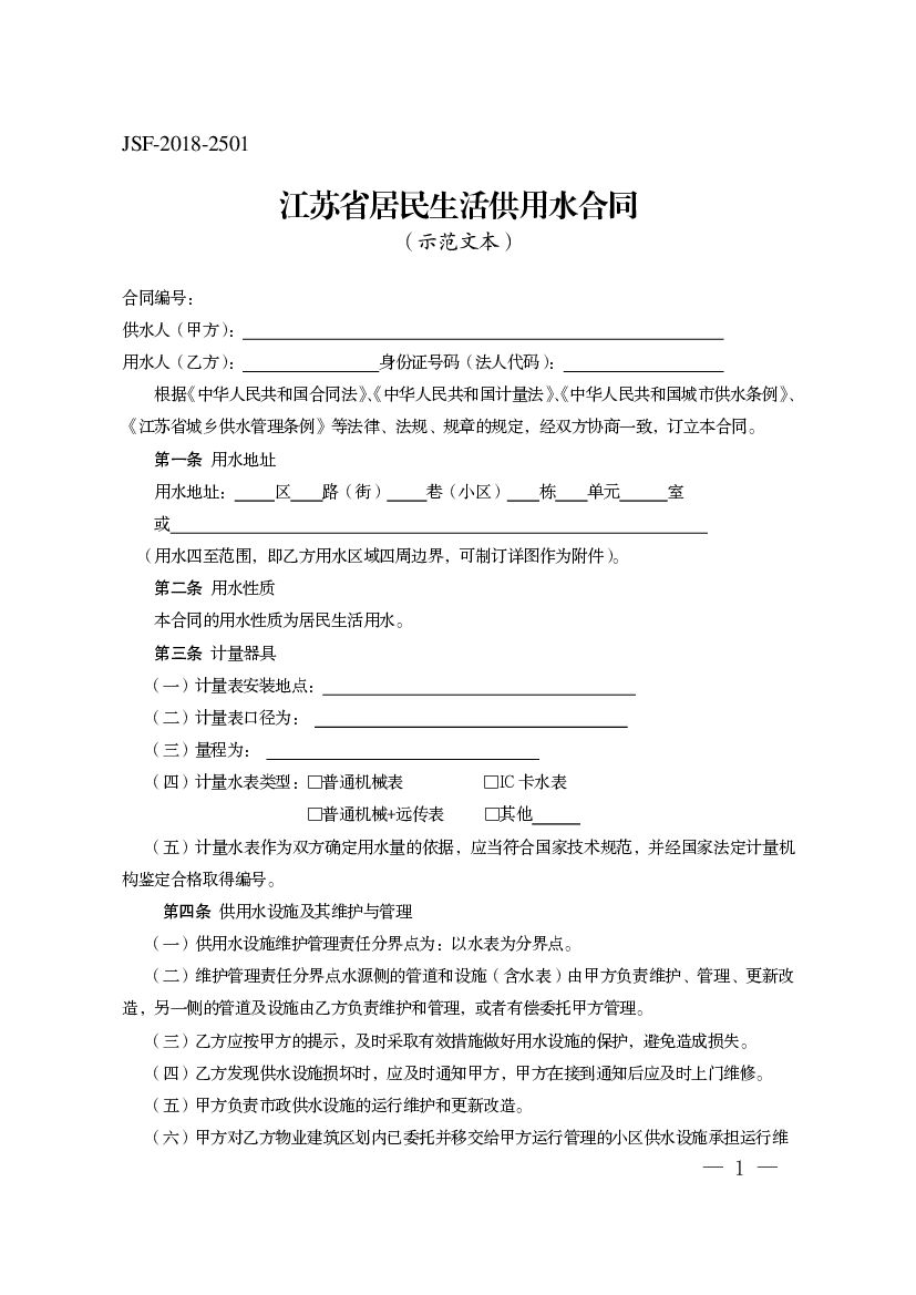 JSF-2018-2501 江苏省居民生活供用水合同(示范文本).pdf