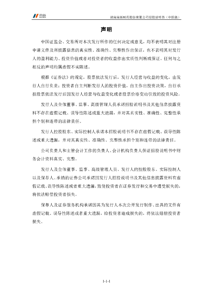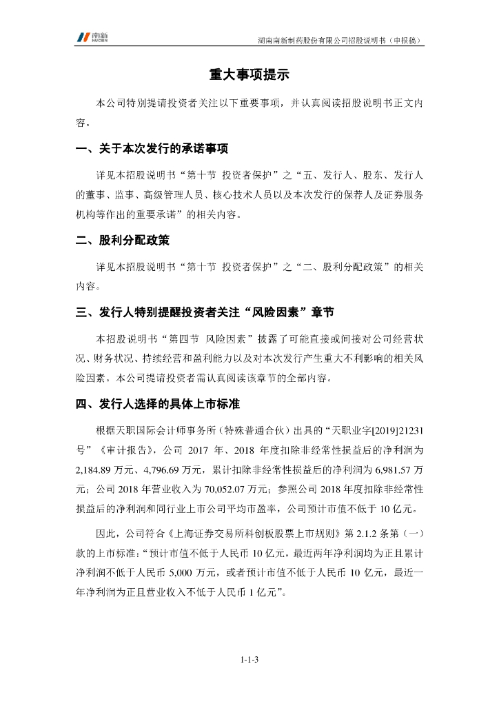 湖南南新制药股份有限公司上交所科创板IPO上市招股说明书.pdf
