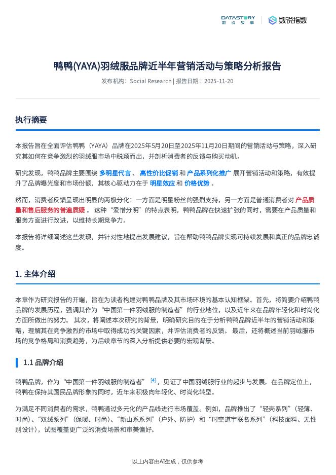 数说故事:2025年鸭鸭近半年营销策略、竞争优势及消费者反馈分析报告.pdf