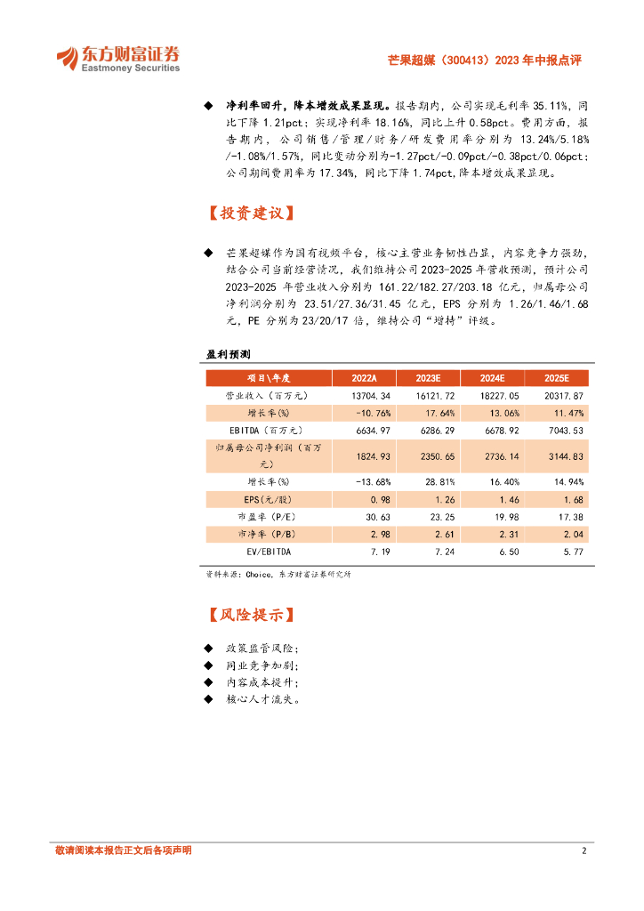 东方财富证券:芒果超媒(300413)-2023年中报点评:内容生态优势凸显,小芒电商快速增长.pdf